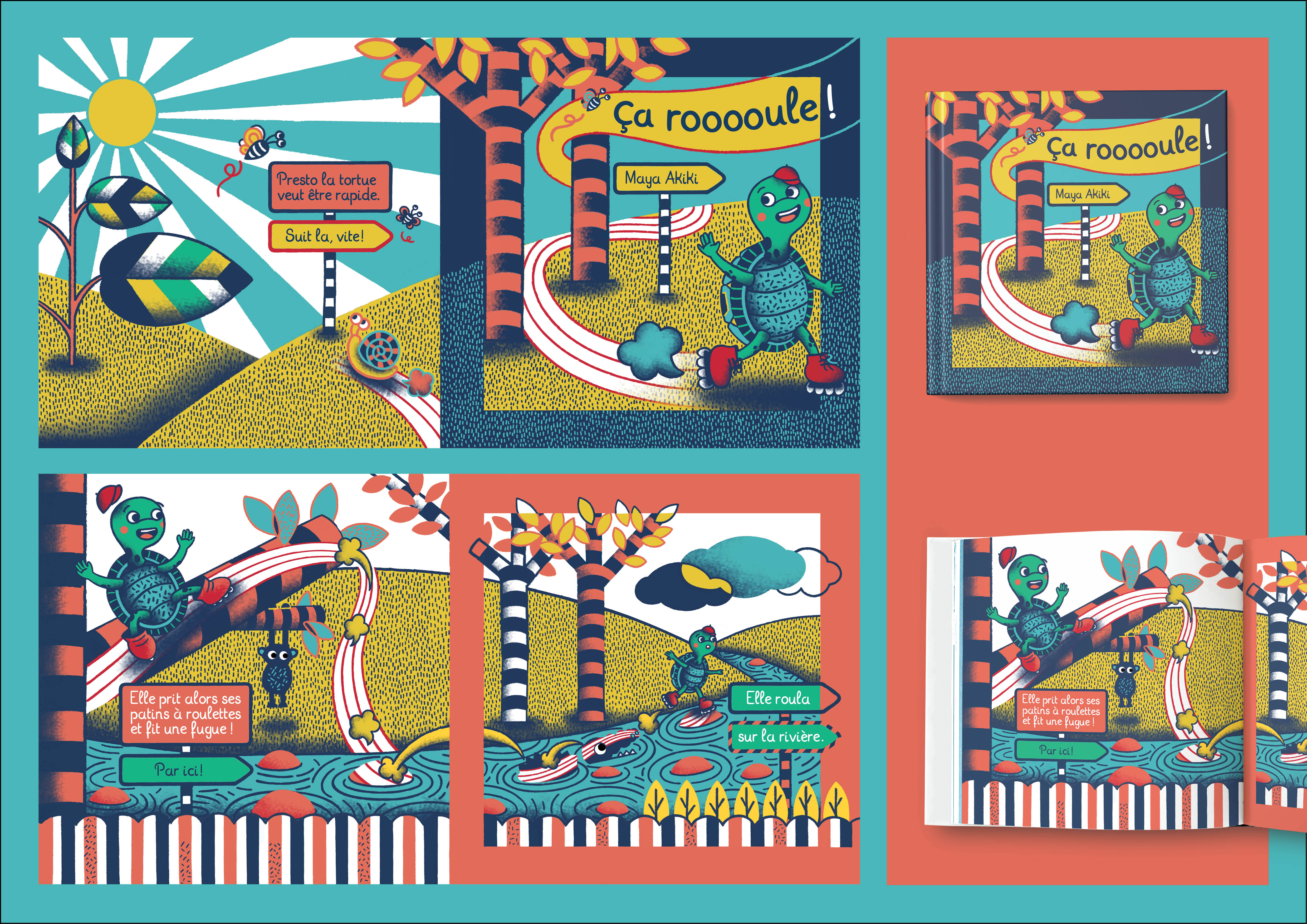 Ça roule! (“It is rolling!”, in English) is the story of a turtle who wants to go fast, so she wears her rollers and embarks on adventures around the world. She does everything quickly, but is she truly enjoying it? This children’s book of mine, the second one I write and illustrate, may be published in 2025. Stay tuned!