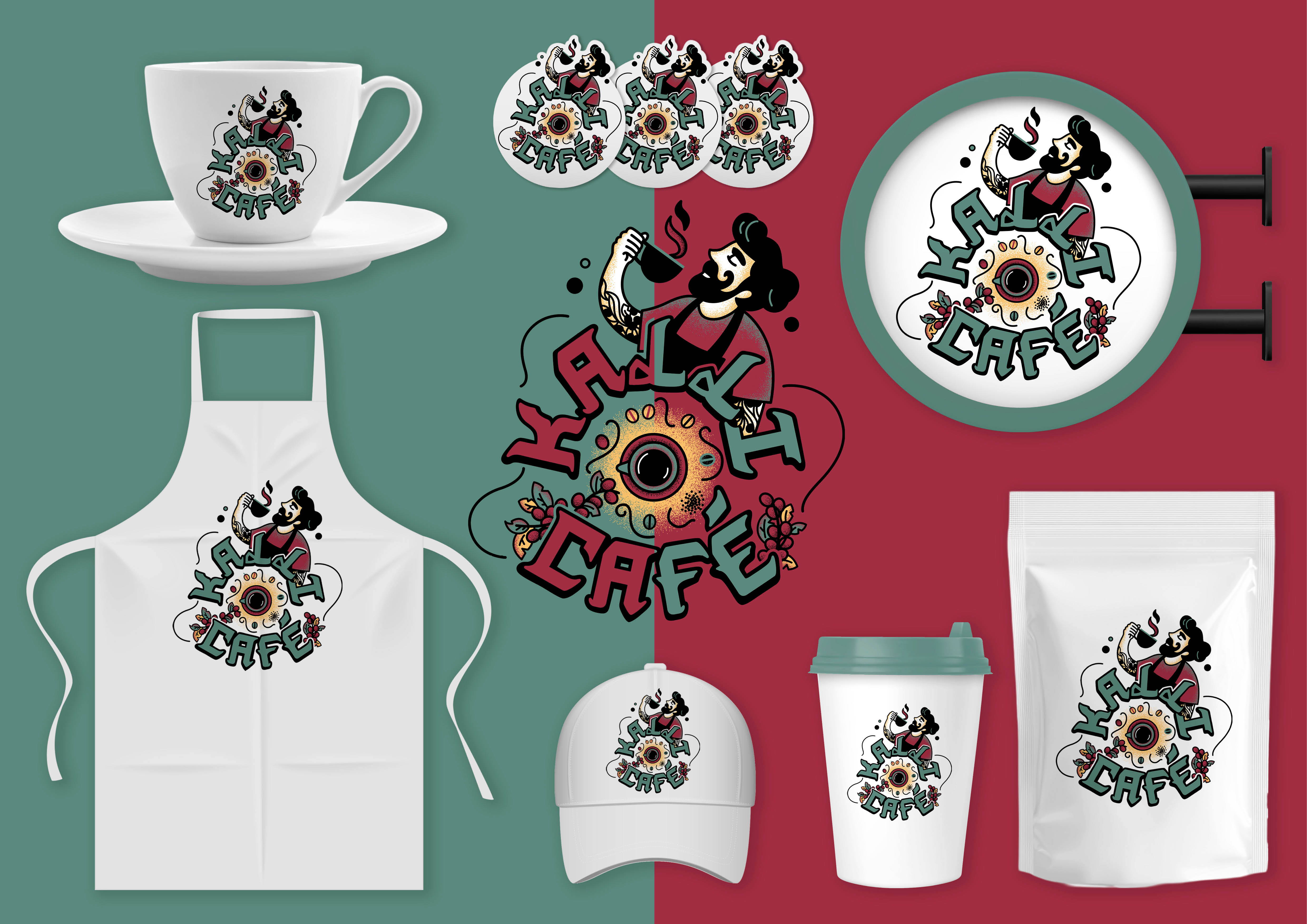 Kalli Café’s barista needed a versatile logo for his brand, one that could be used across a wide range of applications without major modification: coffee cups, clothing, stickers, merchandise, and the shop sign.