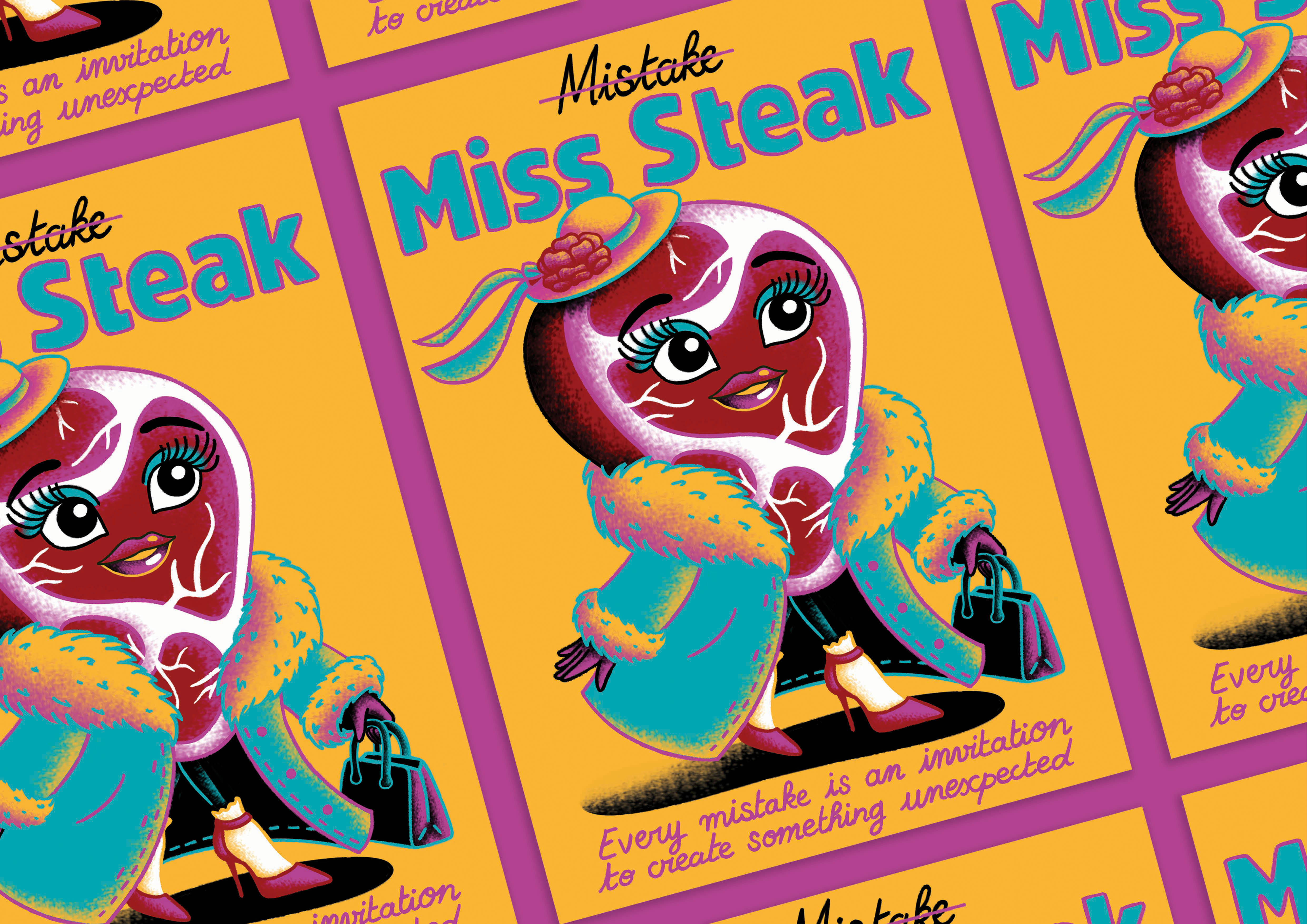 Every mistake is an invitation to create something unexpected. As an artist, I tend to see and hear the world a little differently. When I read the word “mistake” in the Poster Heroes 2024 brief, I heard “Miss Steak”. This twist turned into the idea behind this poster: a mix of humor, wordplay, and the unexpected turns that creative thinking can take.